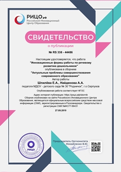 Диплом о публикации в интернет-издании сентябрь 2019