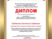 Диплом за 1 место во Всероссийском конкурсе