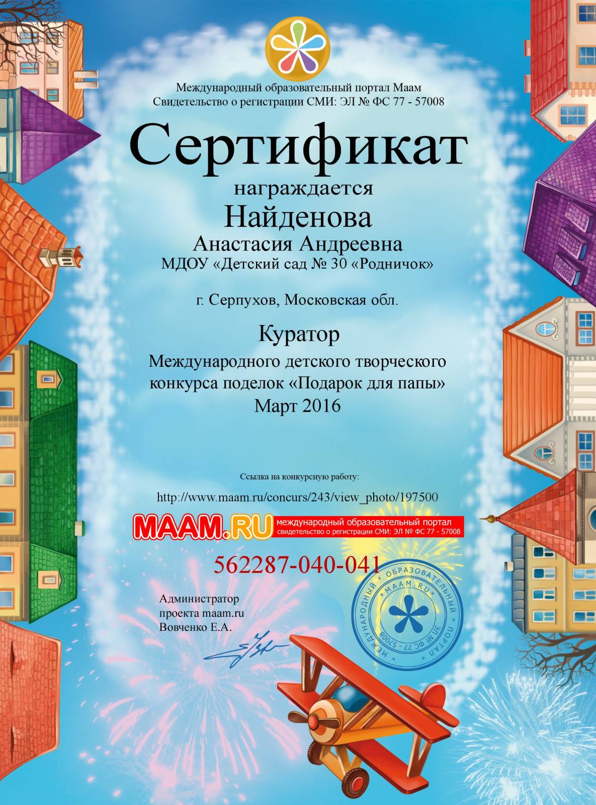 Сертификат куратора международного конкурса