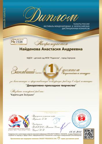 Диплом за 1 место в десятом всероссийском конкурсе
